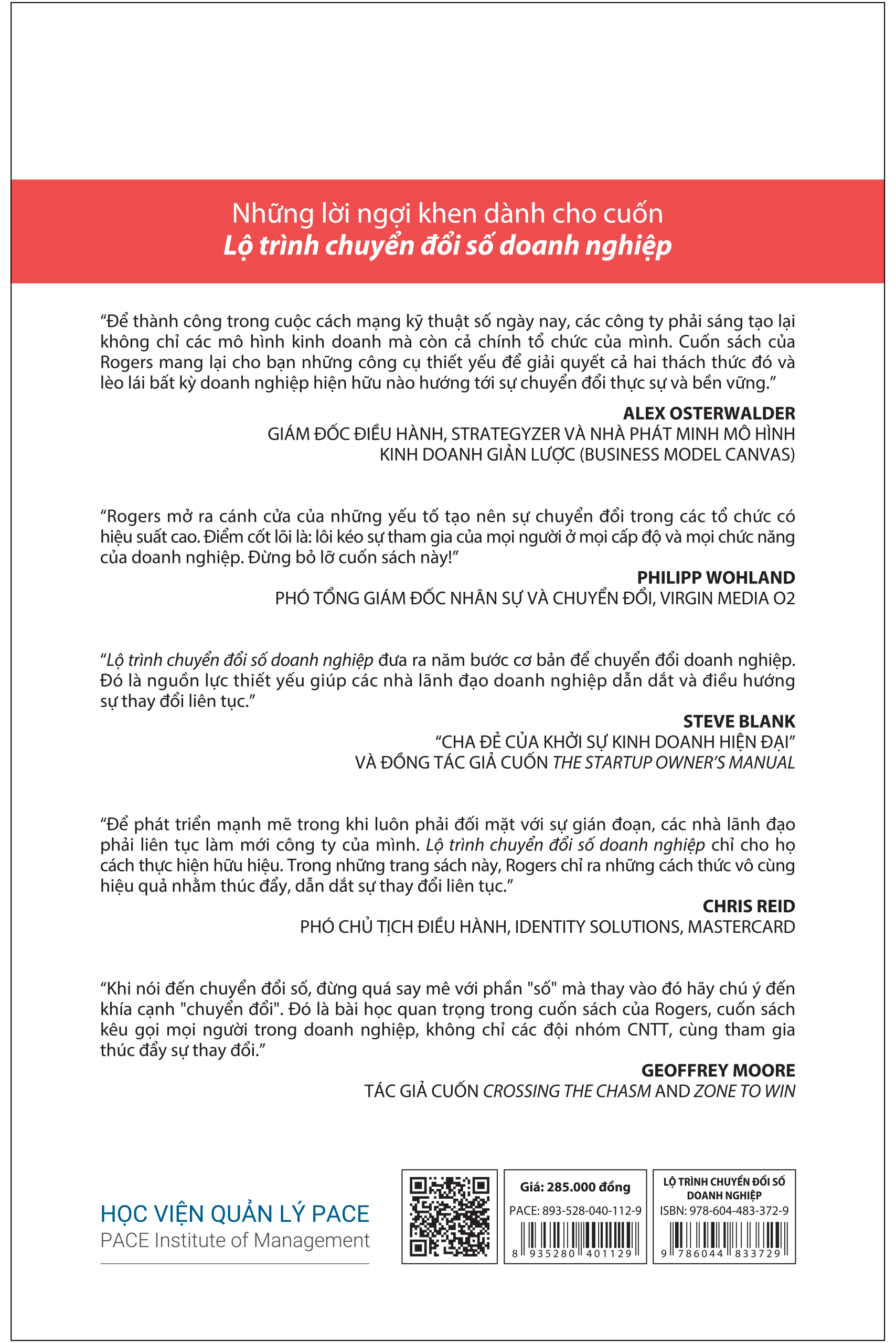 Lộ trình Chuyển đổi số doanh nghiệp sẽ mang lại câu trả lời cho những nhà lãnh đạo. Là tác giả nổi tiếng và nhà cố vấn chuyển đổi số cho các tập đoàn hàng đầu, David L. Rogers lập luận rằng các doanh nghiệp cần phải chuyển đổi không chỉ sản phẩm và mô hình kinh doanh mà còn phải chuyển đổi chính tổ chức của mình.