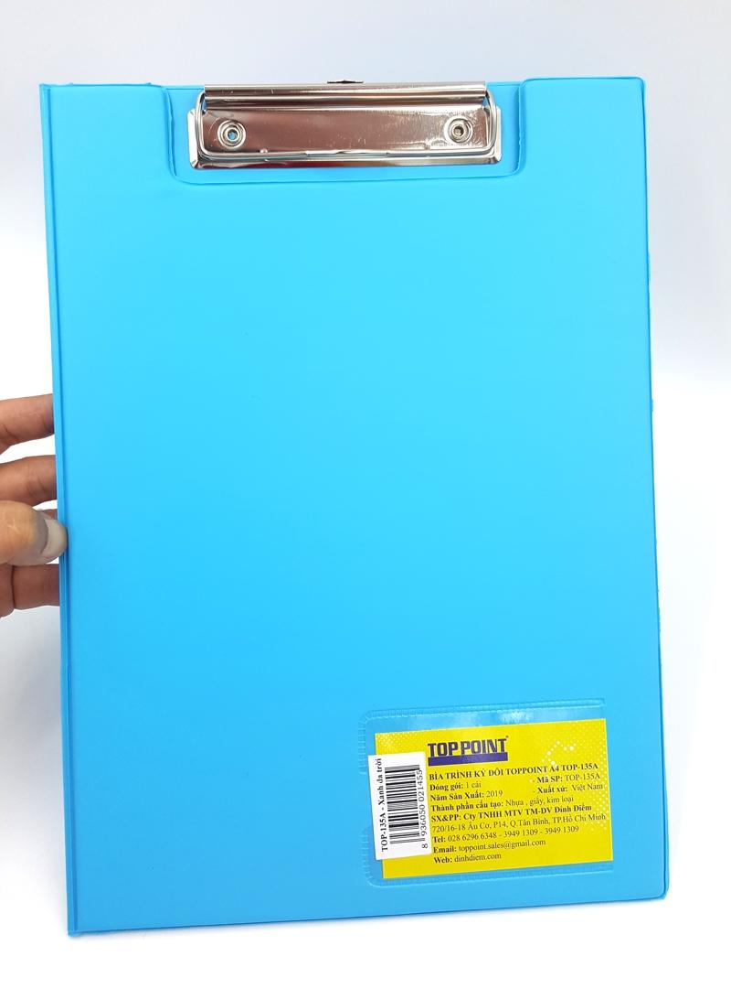 Bìa Trình Ký Đơn Toppoint A4 TOP-163A - Xanh Da Trời Sản phẩm được làm từ chất liệu nhựa cứng PP cao cấp. Thanh kẹp cũng được thiết kế bằng chất liệu có độ bền