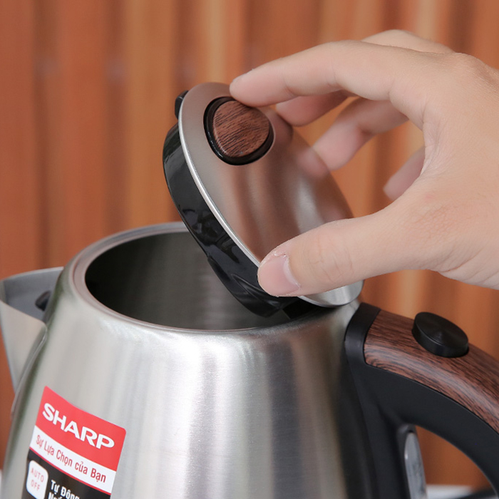 Bình đun nước siêu tốc Sharp EKJ-17EVSD-WD có thiết kế nhỏ gọn, kiểu dáng hiện đại với màu inox bóng loáng phối đen mang lại nét đẹp sang trọng cho không gian sử dụng. Sản phẩm thiết kế tay cầm tiện dụng, giúp bạn dễ dàng di chuyển, không chiếm nhiều diện tích khi sử dụng.