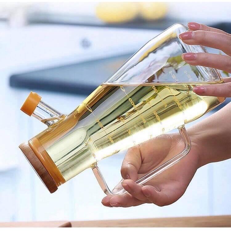 Bình Thủy Tinh Rót Dầu Ăn/Nước Mắm Có Vòi & Phễu Tích Hợp – Dung Tích 500ml – Chai Đựng Gia Vị Thông Minh, Chịu Nhiệt, Có Vạch Chia Thông Tin Chung - Dung tích:
