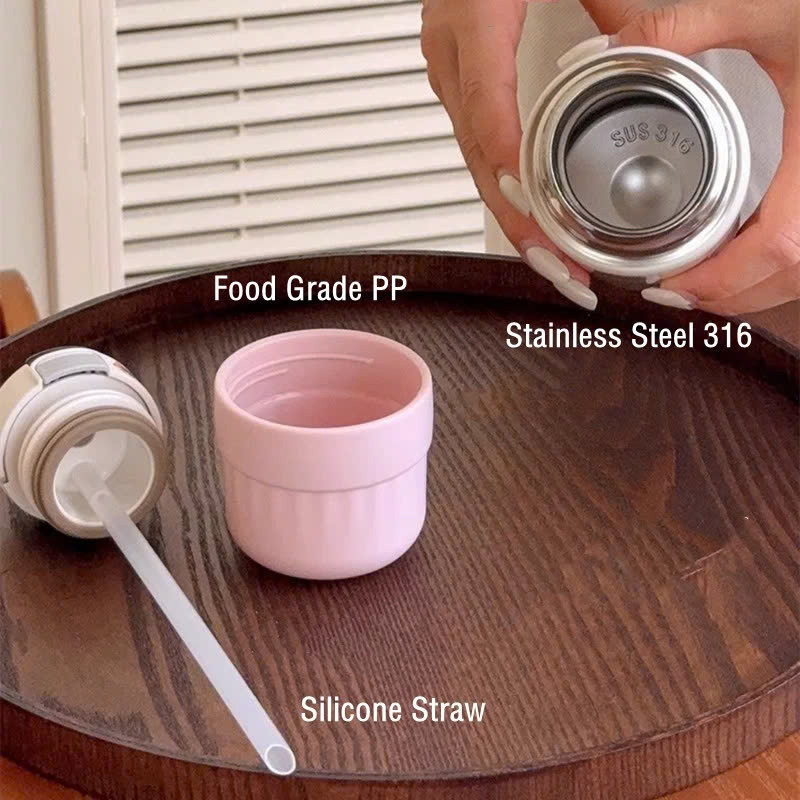 - Thép không gỉ 304 hợp vệ sinh - Nắp vặn không lo lắng về việc rò rỉ nước - Quai xách silicone thuận tiện mang đi và có thể tháo rời giúp dễ dàng