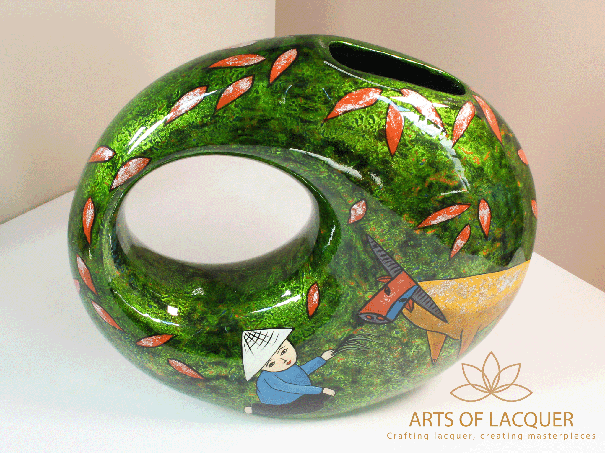 Bình Hoa Sơn Mài "Thuận Hoà Làng Quê" là sự lựa chọn hoàn hảo cho những ai yêu thích nghệ thuật thủ công và phong cảnh làng quê Việt Nam. Hãy thêm vào bộ sưu tập của bạn một tác phẩm nghệ thuật đầy ý nghĩa từ Arts of Lacquer.