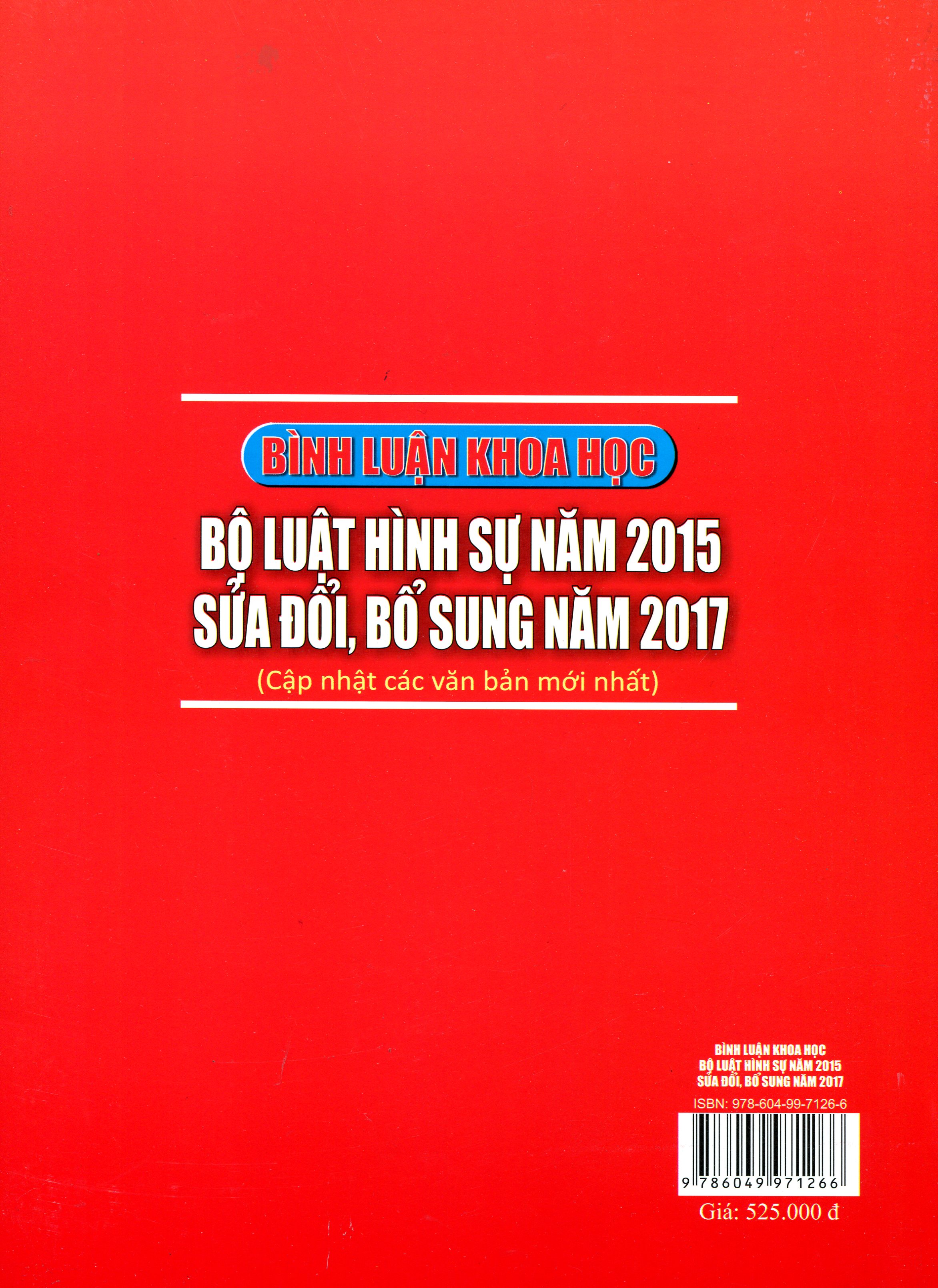 Giới thiệu sách: BÌNH LUẬN KHOA HỌC PHẦN CÁC TỘI PHẠM BỘ LUẬT HÌNH SỰ NĂM 2015 đã được sửa đổi năm 2017 BÌNH LUẬN KHOA HỌC PHẦN CÁC TỘI PHẠM BỘ LUẬT HÌNH SỰ NĂM