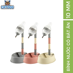 Bình nước kết hợp bát ăn có khấc Purmi có 3 màu: hồng, xám, kem với chất liệu thân thiện với môi trường (chất liệu propylene thường sử dụng trong các sản phẩm đựng đồ