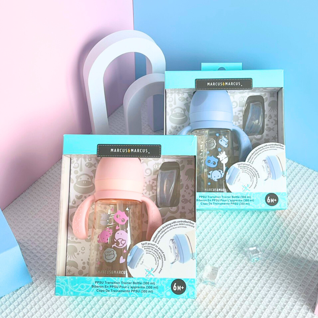 ✨Bình Tập Uống Chuyển Tiếp PPSU Marcus & Marcus 300ml Cho Bé Từ 6 Tháng – Xanh, Hồng