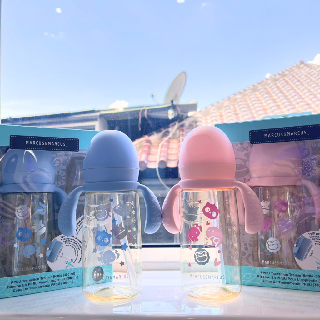 ✨Bình Tập Uống Chuyển Tiếp PPSU Marcus & Marcus 300ml Cho Bé Từ 6 Tháng – Xanh, Hồng