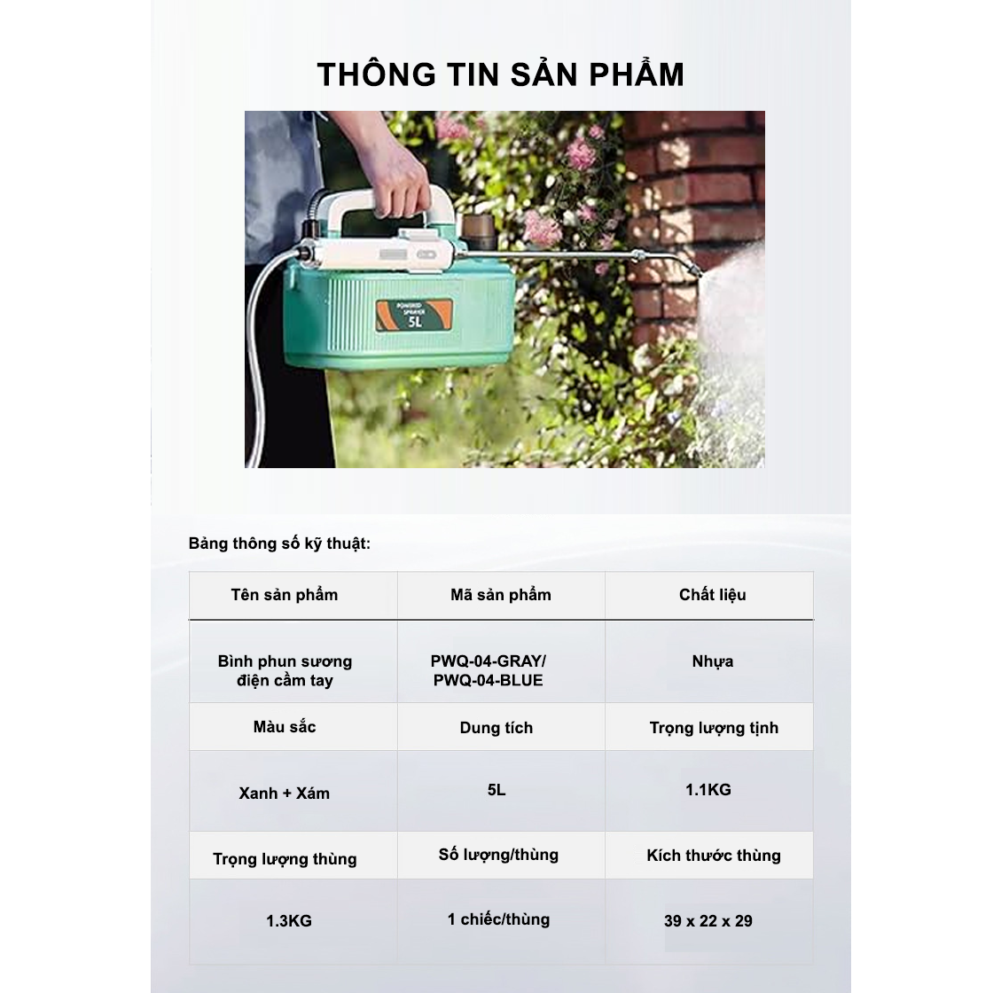 Bình xịt điện 5l dùng pin sạc, phun thuốc vườn hoa rau, cây cảnh