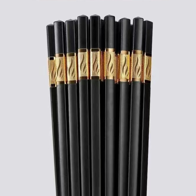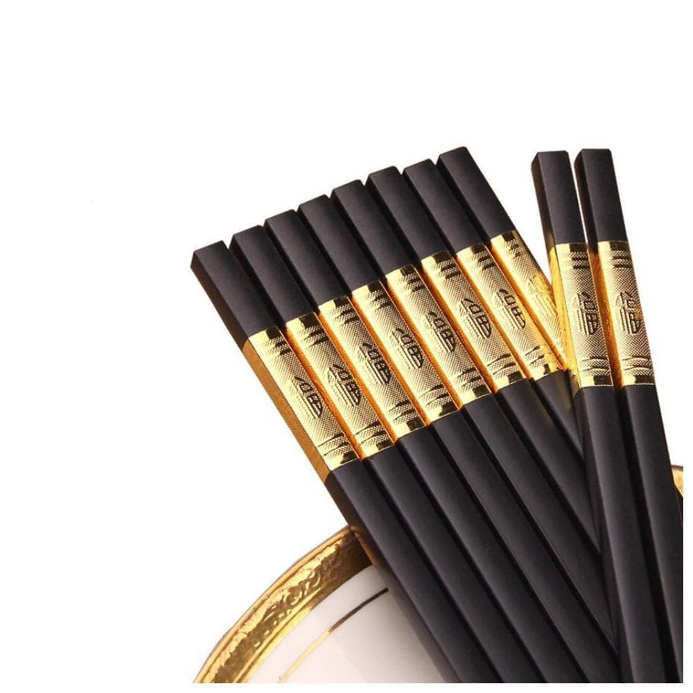 10 Đôi Đũa Mạ Vàng Hàn Quốc Nhựa Đen Cao Cấp Chống Trơn Chống Mốc Chịu Nhiệt