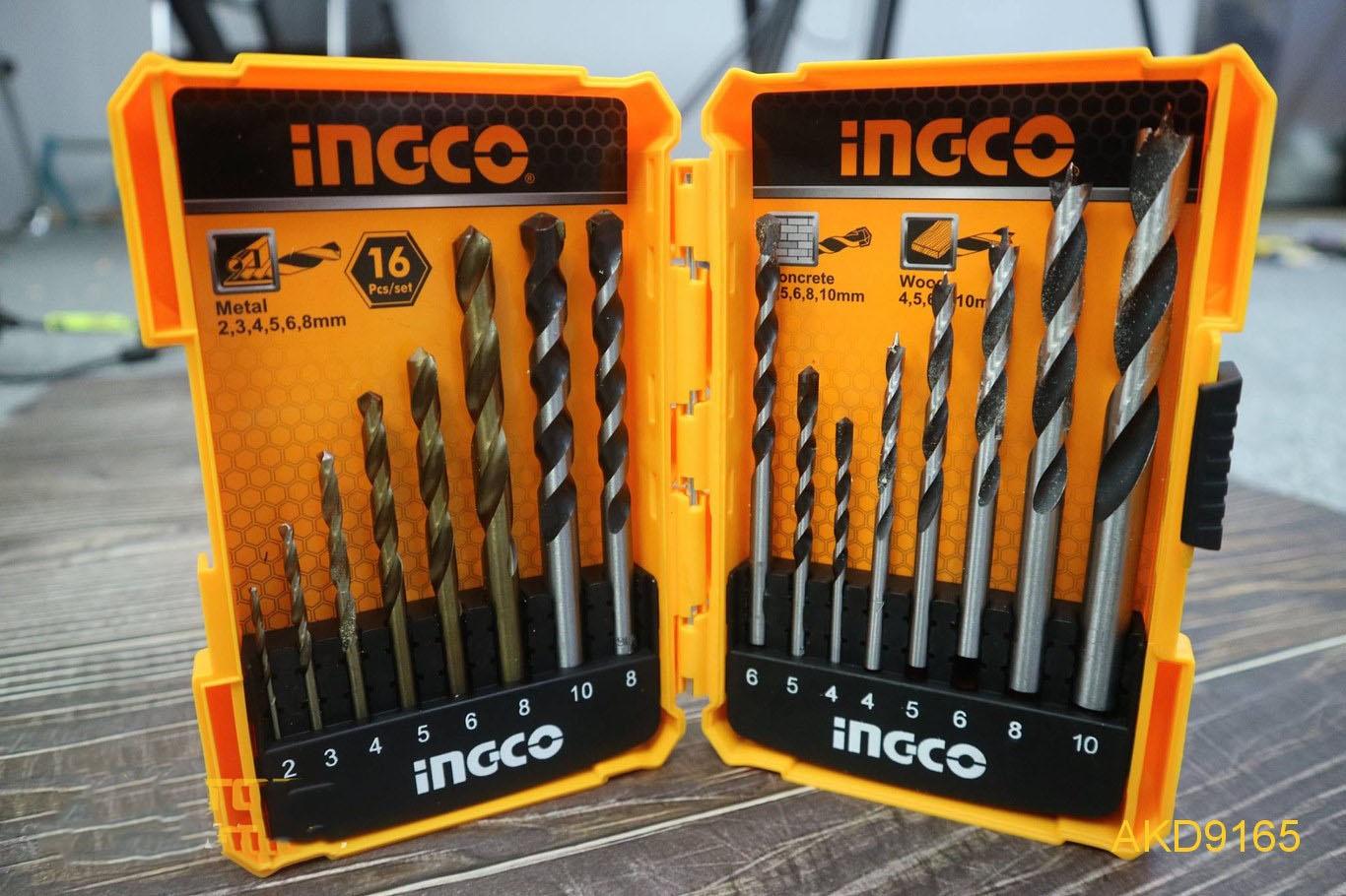 ✨BỘ 16 MŨI KHOAN KIM LOẠI, BÊ TÔNG VÀ GỖ INGCO AKD9165 - HÀNG CHÍNH HÃNG