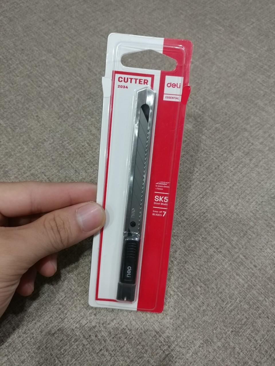 Dao Rọc Giấy - Deli 2043 được thiết kế tiện dụng với chuôi dao dễ mở khi cần thay lưỡi, cán dao cong dễ cầm nắm và điều khiển vết cắt. Lưỡi dao có bản lớn