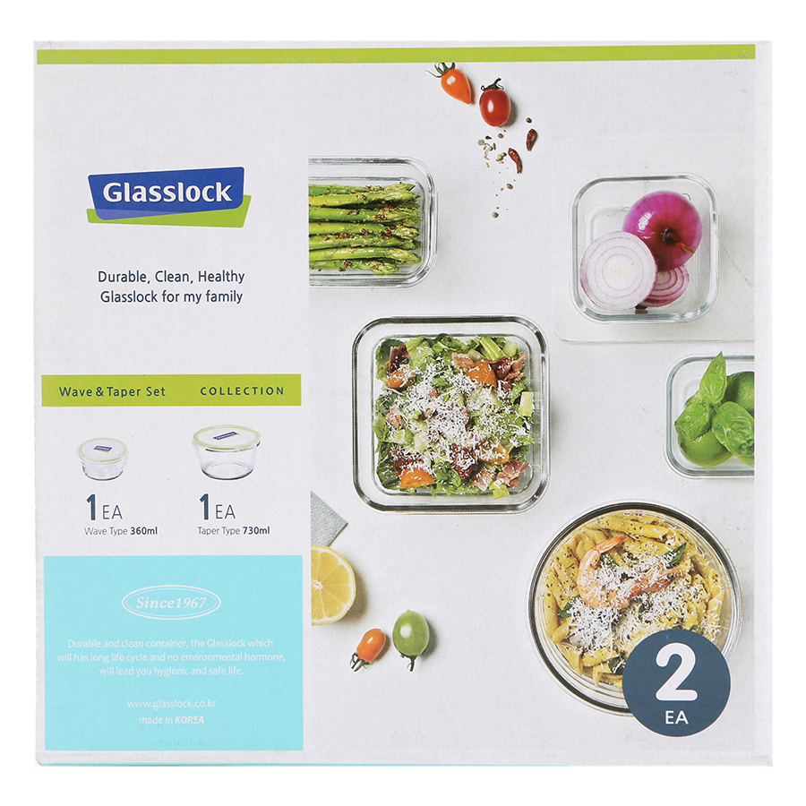 ✨Bộ 2 Hộp Thủy Tinh Hình Tròn Glasslock GL1471 (360 + 730 ml)