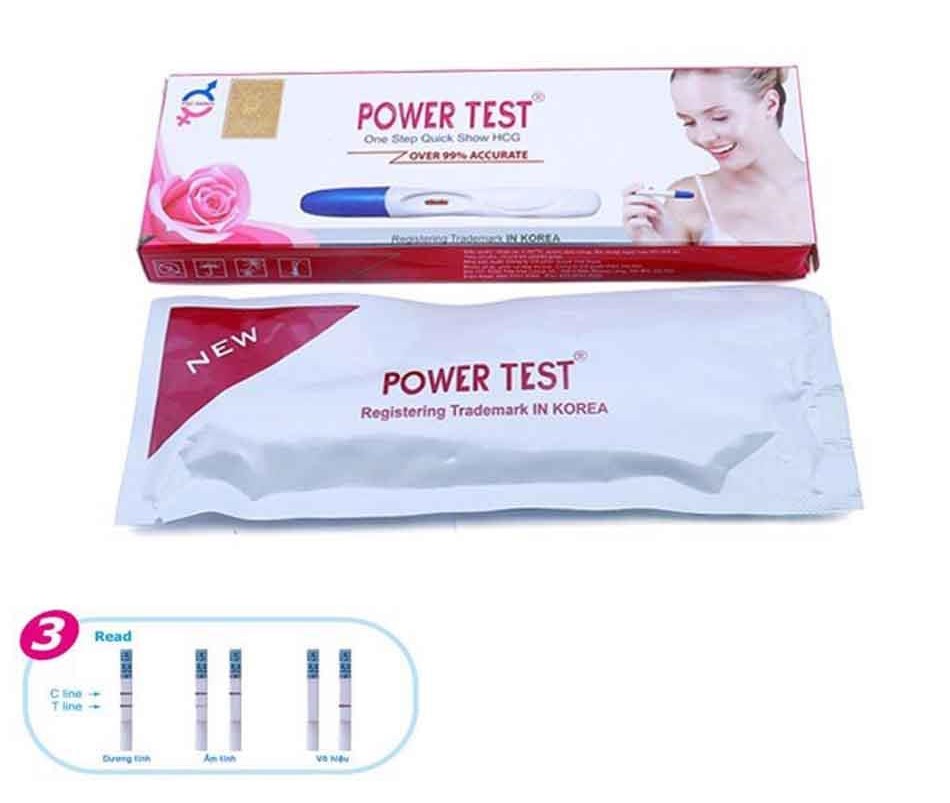 Tên sản phẩm: Que thử thai PowerTest Kích thước test: rộng 3mm Tính năng: Phát hiện thai sớm sau 6 -9 ngày trứng rụng ƯU ĐIỂM: Phát hiện thai sớm sau 6 -9 ngày