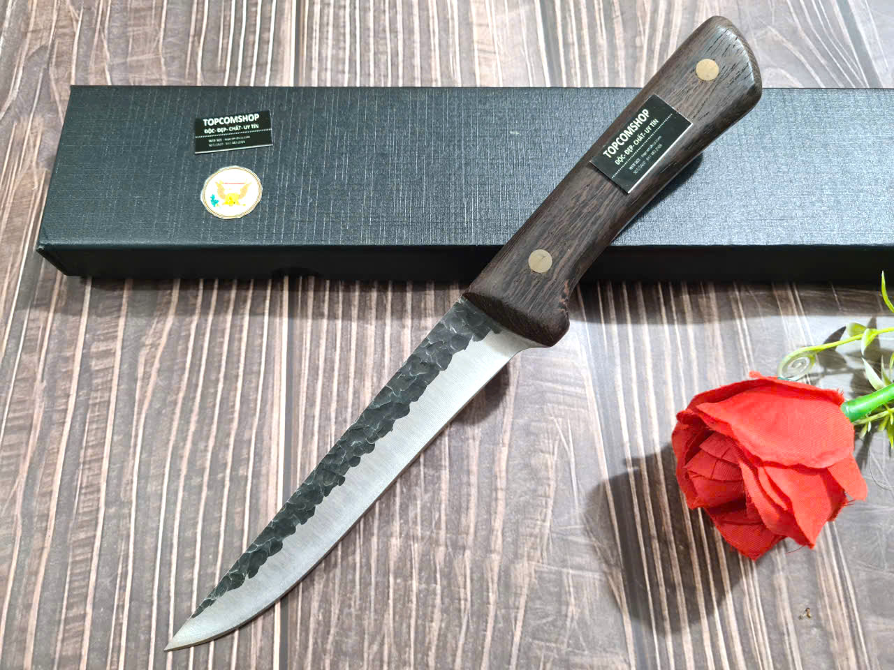 D SỐ 1 : TỔNG DÀI : 27cm, LƯỠI: 14cm,RỘNG : 2.3cm, dày: 2.5mm, CHẤT liệu lưỡi: 5Cr15MOV (thép 5 crom 15 molypden vanadi).Chất liệu CÁN: gỗ Cánh gà,.NẶNG : 1.5 lạng