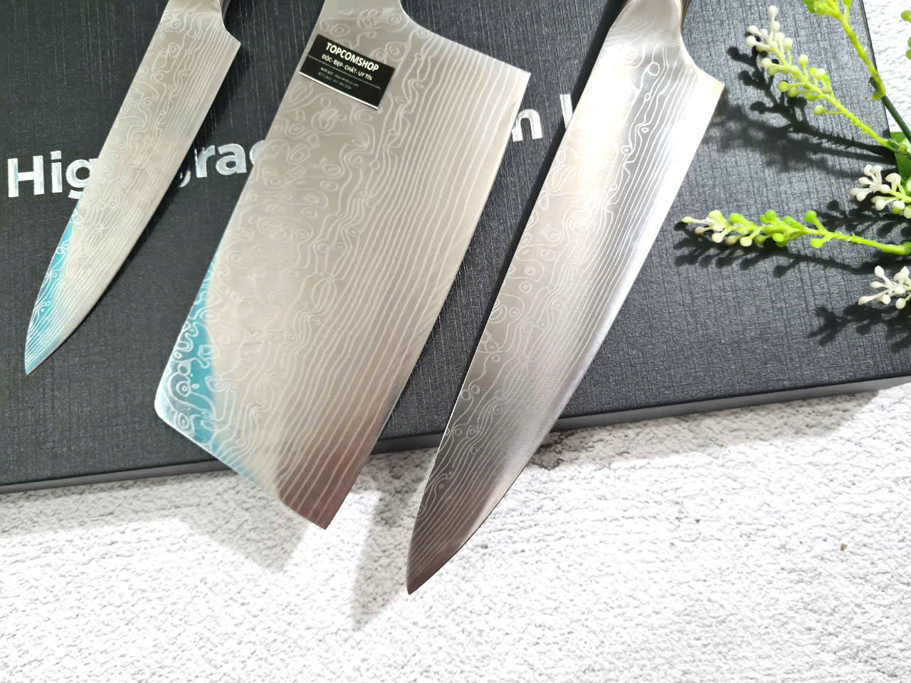 Bộ 3 Dao, Bộ Dao Nhật Bản, Bộ Dao Lưỡi Thép, Bộ Dao Nhà Bếp - Có Chuôi Có Bao Da