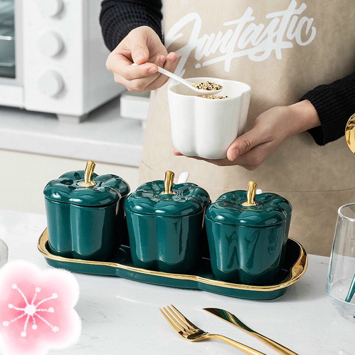 ✨Bộ 3 hũ đựng gia vị sứ cao cấp hình trái ớt chuông - VD706