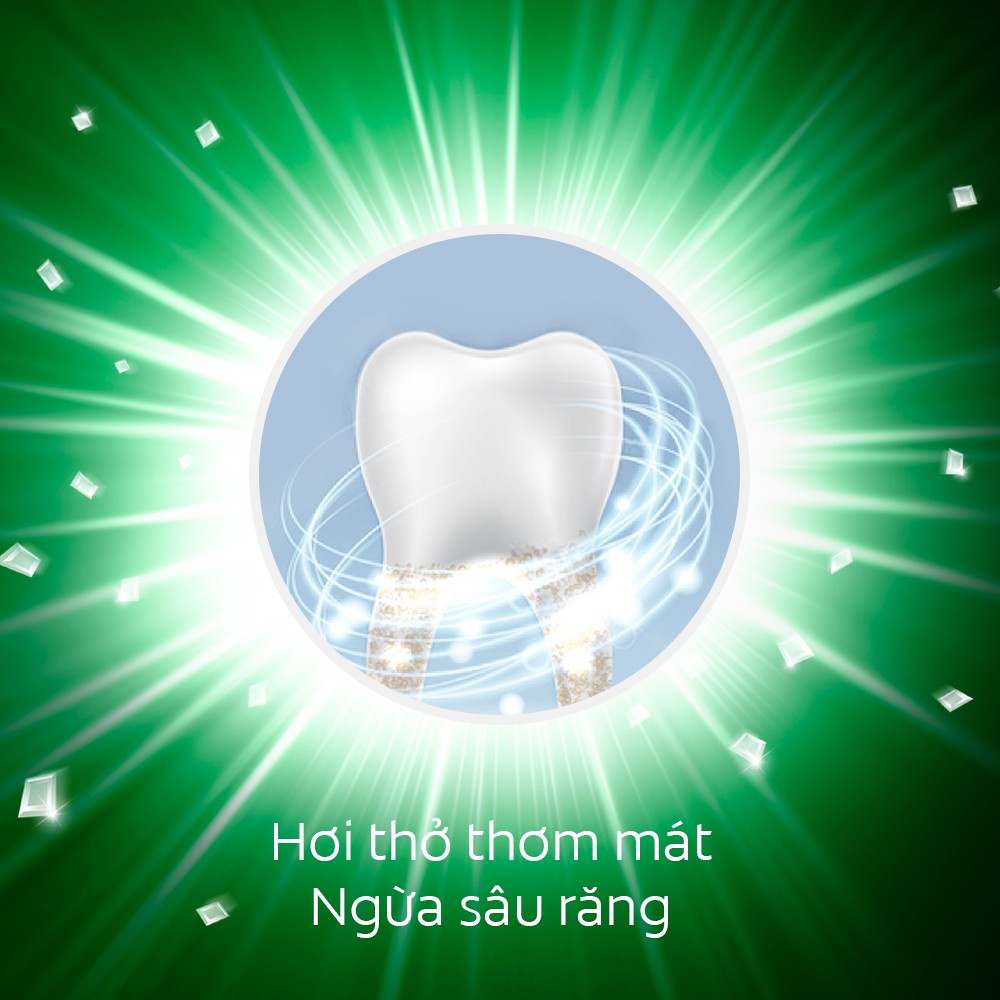 Tinh chất bạc hà cho cảm giác the mát, sảng khoái suốt ngày dàiNgừa sâu răng và hôi miệng, giúp hơi thở thơm mát.Ngăn ngừa các bệnh răng miệng, viêm nướu, viêm nha chu.Giúp răng