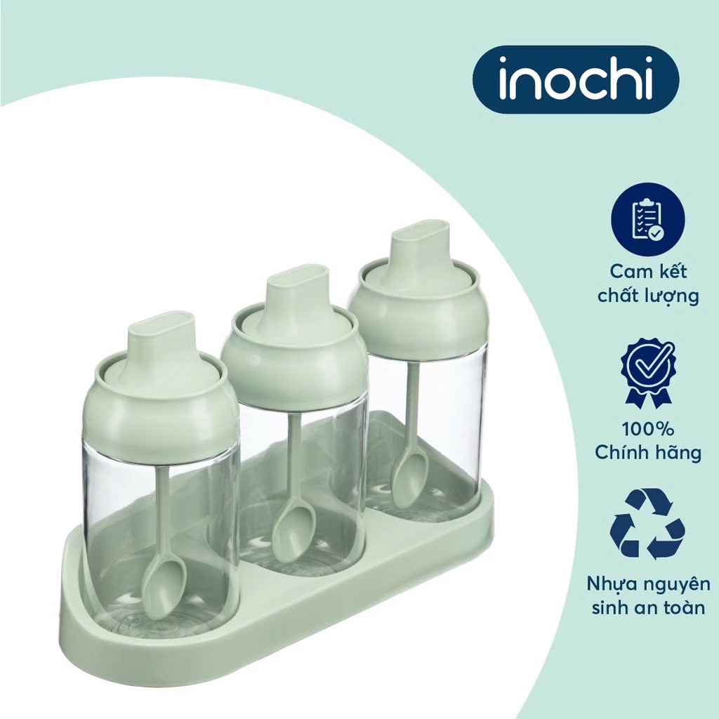 BỘ 3 LỌ GIA VỊ Yoko Inochi -Chất lượng nhựa tritan nguyên sinh đạt chuẩn xuất Nhật , EU an toàn, cao cấp, tích hợp muỗng, tiện lợi khi sử dụng - Hàng chính hãng