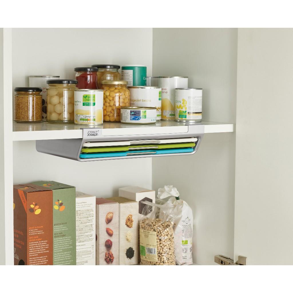 Thiết kế độc đáo cho phép bạn tiết kiệm không gian lưu trữ thớt bằng cách sử dụng không gian chưa sử dụng bên dưới kệ của bạn