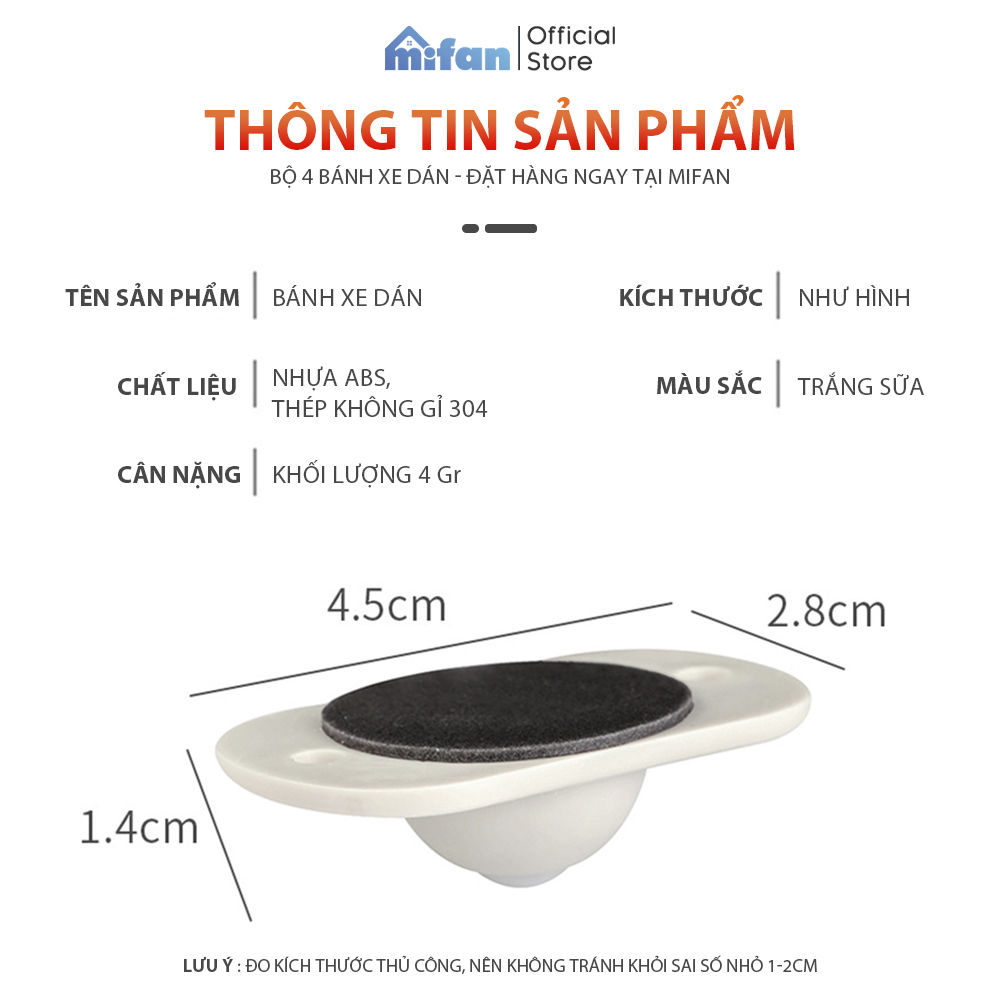 ✨Bộ 4 Bánh Xe Dán MIFAN Di Chuyển Thùng, Hộp - Xoay 360 Độ, Nhựa ABS Siêu Bền, Chịu Lực