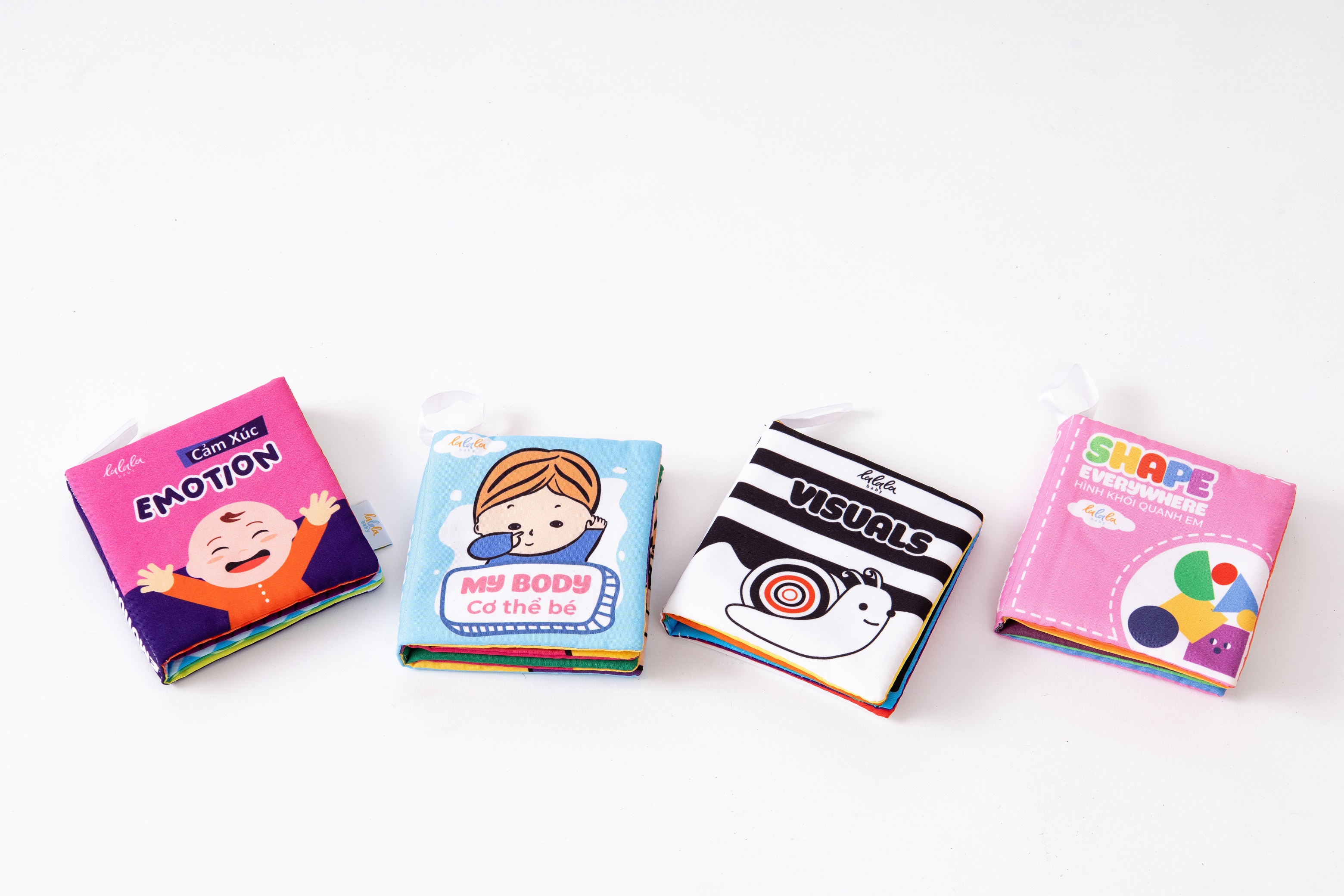 - Bộ 2 Phát triển: Đếm số, Phân biệt màu sắc, đặc trưng của các loại hoa quả, động vật. Gồm 4 cuốn: Colors, Animals, Number, Fruits Sách vải phát triển đa giác quan: