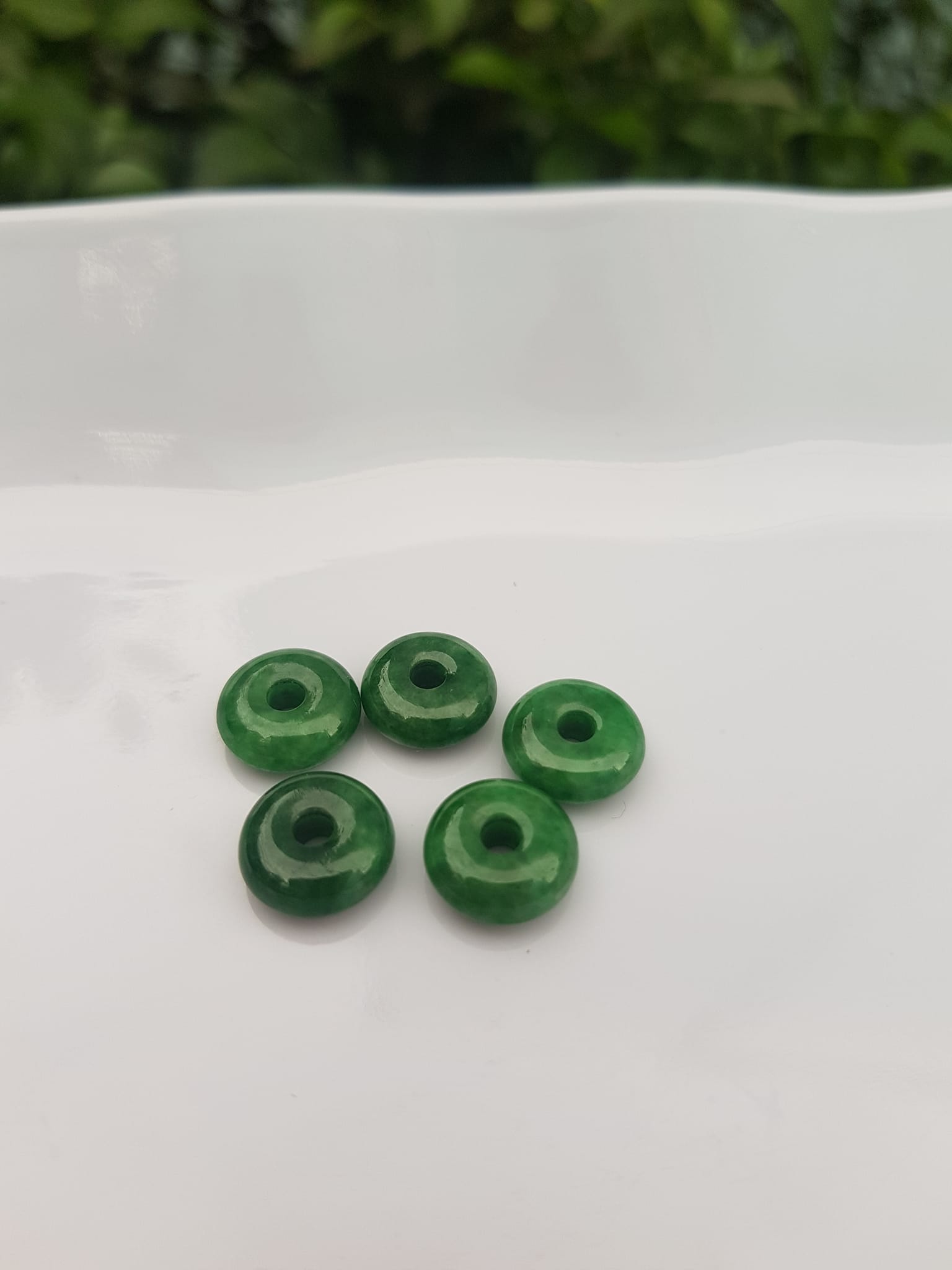 Bộ 5 đồng tiền đá cẩm thạch tự nhiên xanh ngọc đậm đều đẹp Nữ Phối vòng tay,mặt dây chuyền vàng đeo cực kỳ xinh xắn ạ Size hạt 9mm x dầy 3,8mm x lỗ