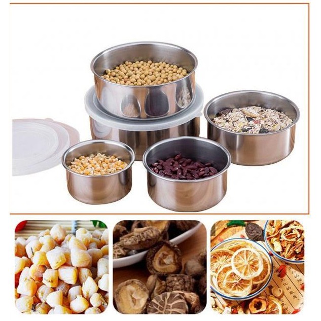 -Combo 5 hộp đựng thực phẩm inox nhiều kích thước, cho bạn thoải mái bảo quản thực phẩm.