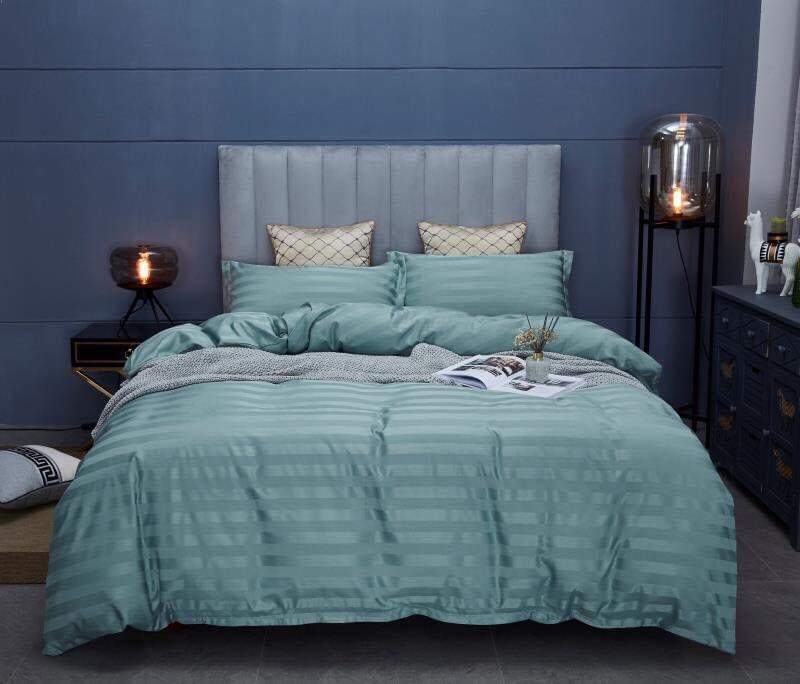 [GIAO HÀNG TỨC THỜI] Bộ 5 món vỏ chăn drap gối cotton lụa 3F sọc 3 phân Ánh Sao 1m6x2m/1m8x2m
