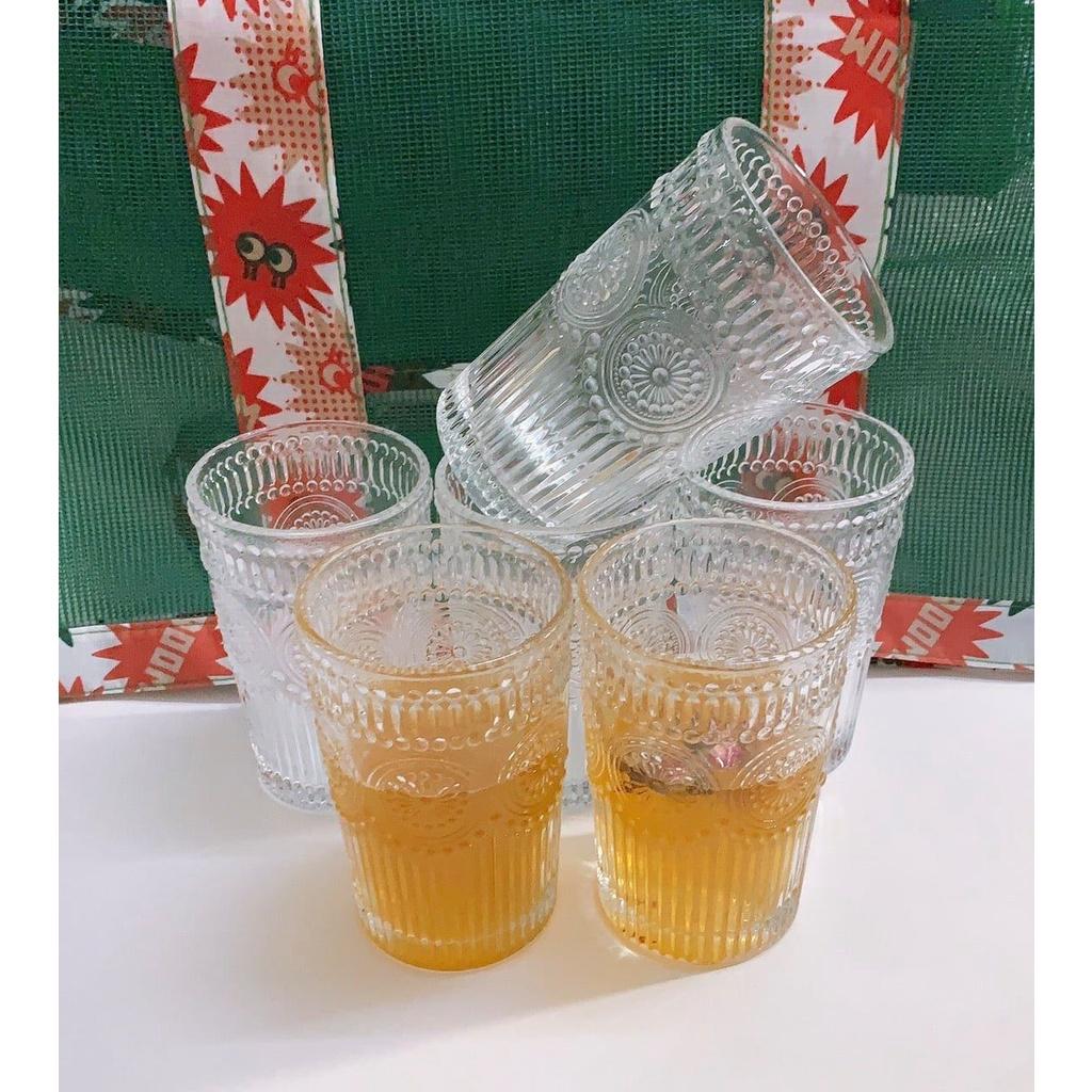 ✨Bộ 6 ly thủy tinh chịu nhiệt cao cấp dùng uống nước hoặc rượu tây vân trống đồng trắng không viền vàng 365ml