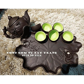 ✨Bộ ấm trà bát tràng gốm tử sa khay lá sen nổi đẹp