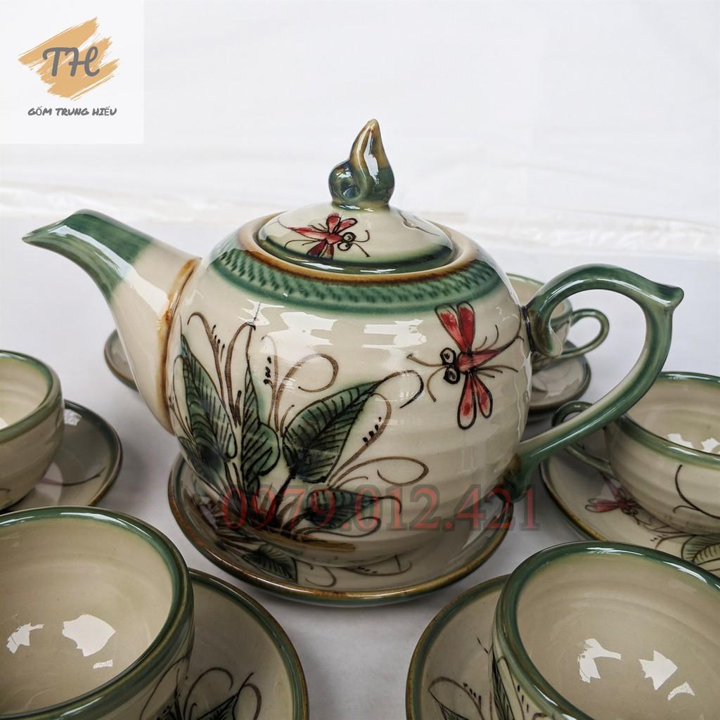 ✨Bộ ấm chén Bát Tràng men bóng vẽ Chuồn khoai