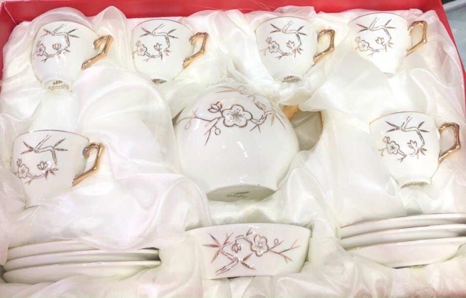 Mua tại TiktokBộ ấm chén trà bằng sứ cao cấp có khả năng chịu nhiệt, giữ nhiệt tốt và rất an toàn cho người sử dụng. Hộp xốp và giấy bảo vệ đẹp Hoa văn trang nhã và giản dị. Bộ bình cốc sứ cao cấp: Chất liệu sứ sáng , bóng, mỏng và rất nhẹ. Không có họa tiết sử dụng kim loại nên an toàn về sức khỏe. Với những đường nét tinh tế và sang trọng trong thiết kế rất tiện lợi với kiểu dáng đẹp Sử dụng làm điểm nhấn nội thất phòng khách, phù hợp cho mọi gia đình hoặc các doanh nghiệp. Dùng làm quà tặng năm mới, là món quà mừng tân gia ý nghĩa và sang trọng Chất liệu: Sứ dày dặn, chất men sáng mịn, viền vàng.
