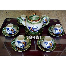 Bộ Ấm Chén Vẽ Chuồn Men Sứ Bát Tràng Cao Cấp