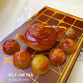 Chất liệu: Đá mã não đỏ Bao gồm: 01 ấm; 06 chén Ấm trà chứa được lượng nước với dung tích là 250ml Sản phẩm có thể dùng để uống trà với nước sôi 100