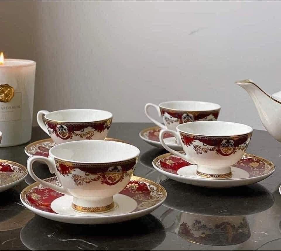 Bộ bình trà gồm: (1 ấm 700ml, 6 tách 120ml, 6 đĩa). Bộ trà tách và ấm dung tích rất phù hợp với văn hoá uống trà của người Việt.