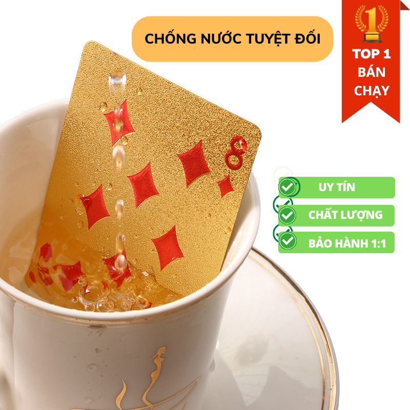 - Bộ 54 lá bài tây Poker mạ xi vàng cao cấp, phủ nhũ vàng 24k, chính hãng Amalife, chống thấm nước chống gãy – Đã được kiểm định 100% chất lượng. Được sản xuất dưới công nghệ hiện đại, tinh tế và sang trọng. Chất liệu