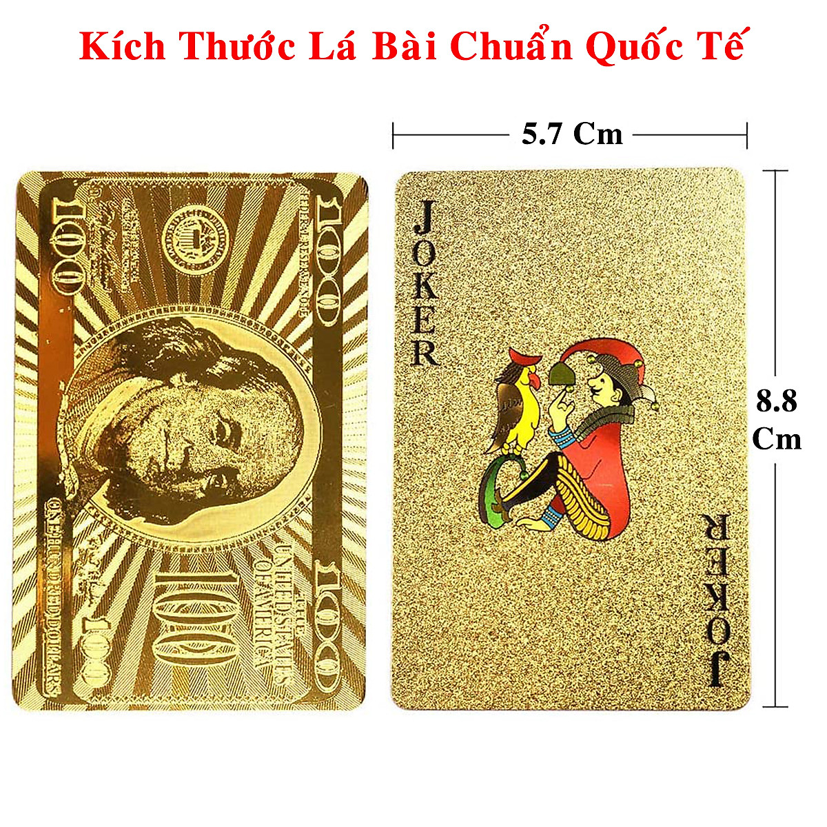 - Kích thước quân Bài tây mạ si vàng : 5.7 cm x 8.8 cm.