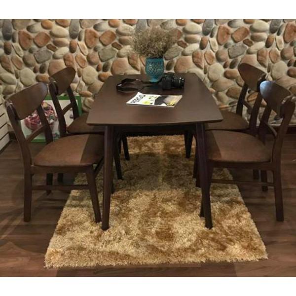 được làm từ gỗ cao su phủ verneer xoan đào sang trọng và hiện đại theo phong cách Âu - Mỹ. Bộ bàn ăn đạt tiêu chuẩn xuất khẩu vào thị trường Mỹ