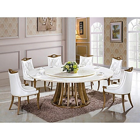 ✨Bộ bàn ghế phòng ăn mặt đá tròn nhập khẩu Juno Sofa HFC-BBA910-13 cao cấp