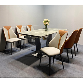 ✨Bộ bàn ghế phòng ăn Tundo mặt đá ceramic, chân inox mạ titan kèm 6 ghế