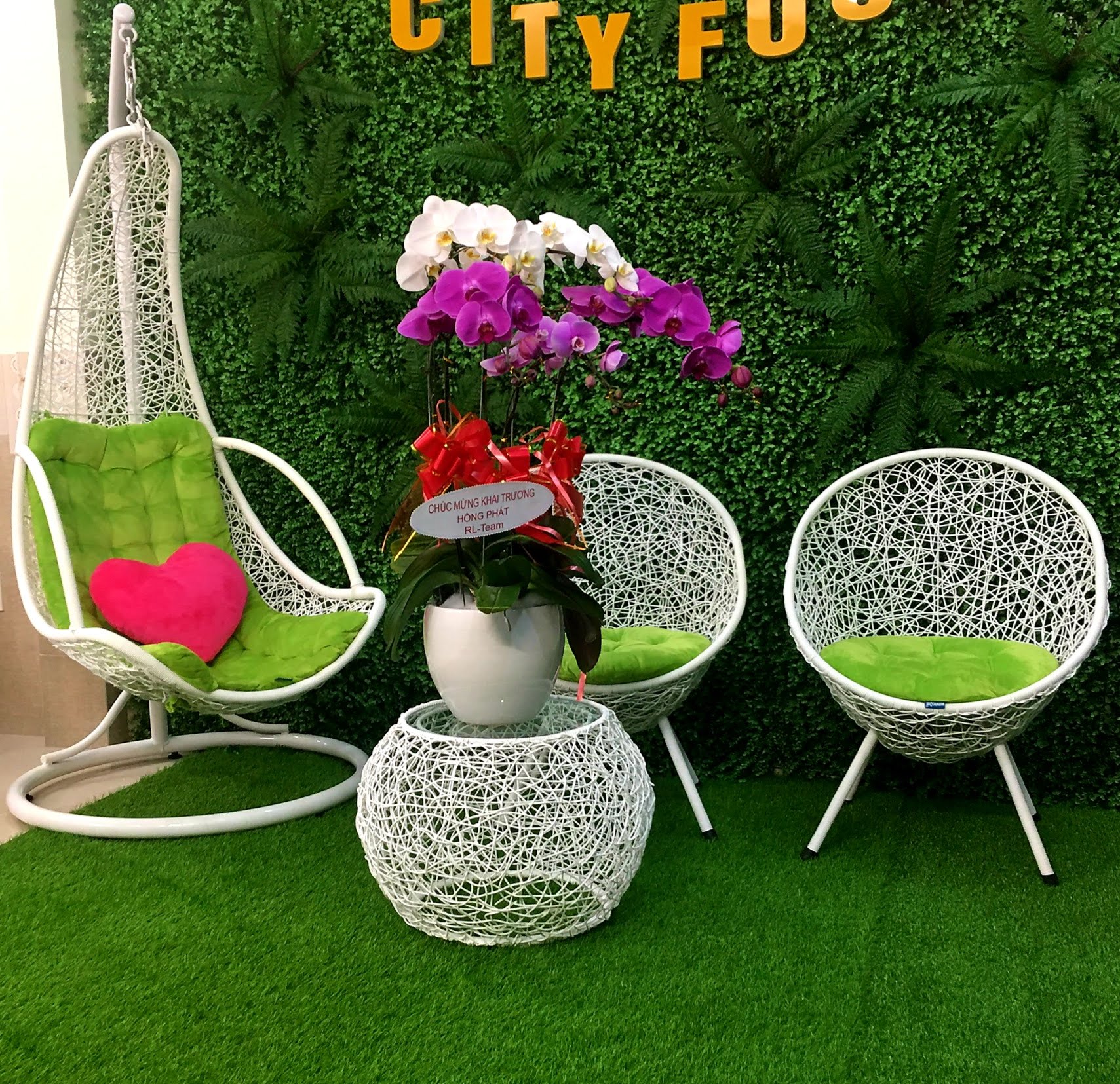 Bộ sản phẩm gồm : 01 bàn mặt kính + 02 ghế + 01 xích đu như hình
