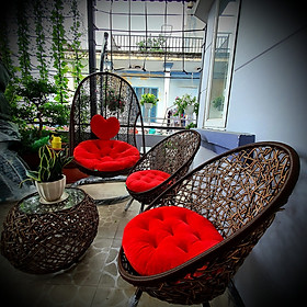 Chất liệu : sắt được tĩnh điện và được gia công sợi giả mây tăng tính thẩm mỹ và độ bền cao khi để ngoài trời