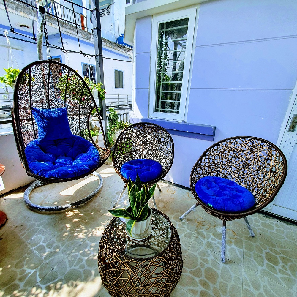 ✨Bộ bàn ghế sân vườn + xích đu NAVICOM - Nệm vải nhung xanh dương