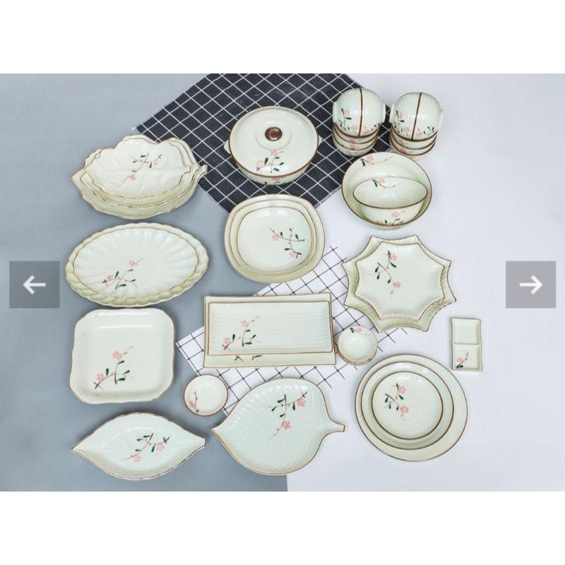✨Bộ bát đĩa Bát Tràng men kem đào hồng đầy đủ