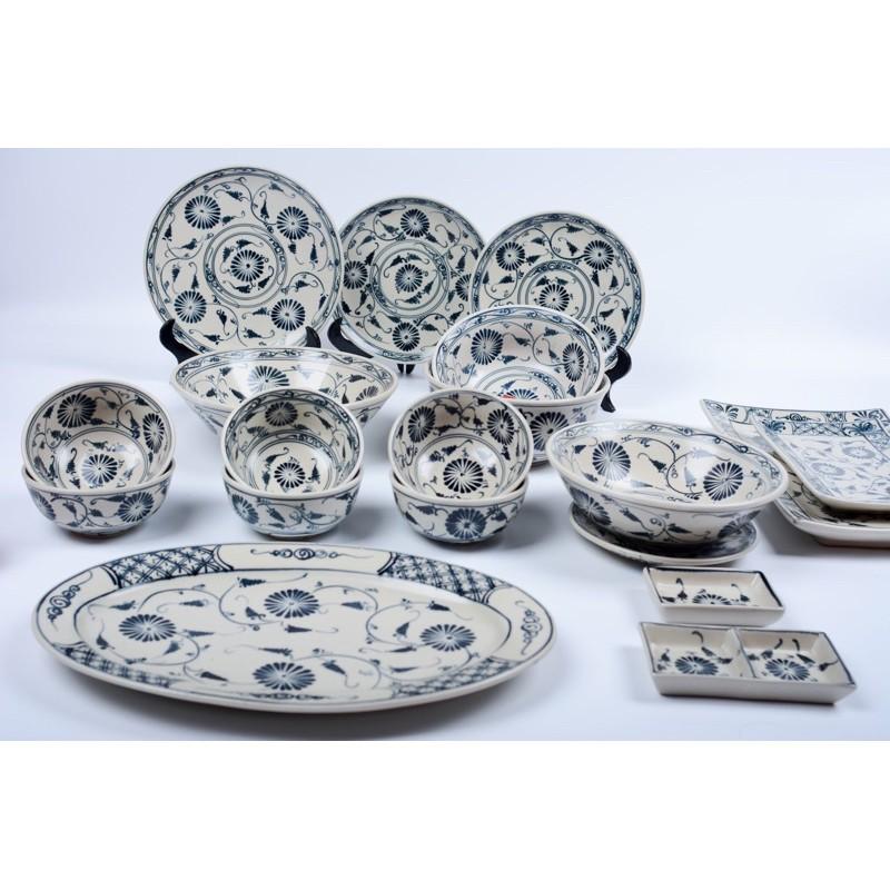 Bộ đồ ăn Bát Tràng - Sản phẩm bao gồm: 6 bát cơm, 1 mắm, 1 muối, 1 tô 16, 1 tô 18, 1 đĩa tròn 14, 1 đĩa tròn 16, 1 đĩa tròn 18,