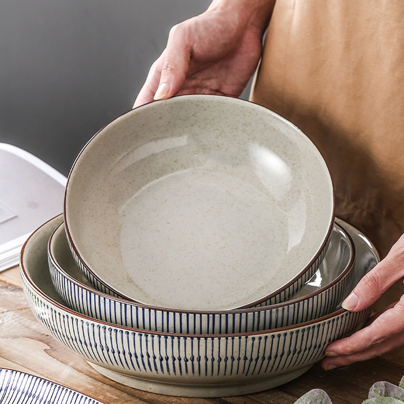 Bộ Bát Đĩa Gốm Sứ Hoa Văn Lá Dọc Phong Cách Nhật Bản Họa Tiết Thổ Cẩm, Thiết Kế Sang Trọng