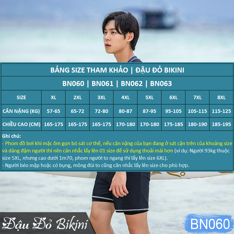 ✨Bộ bơi nam cao cấp, có cỡ big size tới 125kg cho người mập béo, dáng áo bơi cộc tay, quần 2 lớp phom rộng rãi, quần áo bơi size đại cho nam | BN060