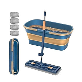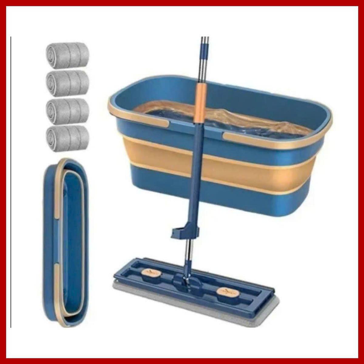 Bộ Cây Lau Tự Vắt Nhà Kèm Xô Gấp Gọn Silicon Thông Minh Tặng Kèm 4 Bông Lau