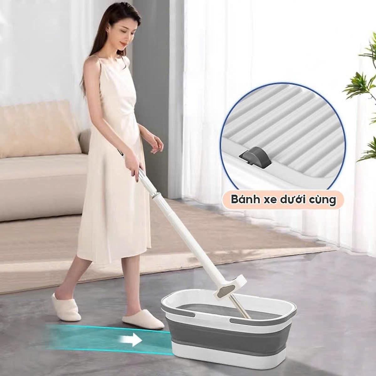 Cây lau nhà tự vắt kèm xô gấp gọn silicon – Bí quyết dọn nhà nhanh gọn | Trạm Nhà