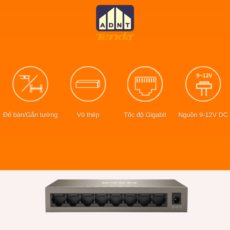 Bộ chia mạng 8 cổng tốc độ 1000Mbps Switch TEG1008M Tenda chính hãng   Được thành lập vào năm 1999, Tenda Technology là nhà cung cấp nổi tiếng hàng đầu cho các thiết bị mạng, cam kết cung cấp các giải pháp mạng chất lượng tốt với giá cả phải chăng và dễ dàng sử dụng, mang lại cái giải pháp sáng tạo, tiên tiến để hỗ trợ cho cuộc sống tiên tiến của con người. Thông số kỹ thuật: Bộ chia mạng 8 cổng tốc độ 1000Mbps Switch TEG1008M -Chuẩn mạng: IEEE 802.3, IEEE 802.3u, IEEE 802.3x, IEEE 802.3ab -Cổng kết nối: 8* cổng 10/100/1000 Base-TX (Auto MDI/MDIX) -Kích thước: 140.0mm×66.5mm×25.3 mm -Chuẩn bảo vệ: ESD; Air discharge: ±8kV; Contact discharge: ±6kV -Nguồn: Input: AC:190-240V; 50/60Hz DC:9-12V -Công suất: Max:<5W -Lắp đặt: Để bàn: Hỗ trợ, gắn tường, gắn tủ Rack:non-Hỗ trợ Ưu điểm nổi bật: -Chuyên dùng cho hệ thống CCTV và mạng doanh nghiệp. -8 cổng gigabit đảm bảo tốc độ truyền tải cho các file lớn một cách nhanh chóng. -Linh hoạt với khả năng hỗ trợ nguồn 9-12V DC, dễ dàng triển khai trong hệ thống. -Hỗ trợ ngàm gắn tường, tính năng cắm và dùng, dễ dàng sử dụng. -Thiết kế vỏ bằng thép giúp tản nhiệt hiệu quả hơn, hoạt động ổn định liên tục thời gian dài. Thông tin bảo hành: -Bảo hành 36 tháng (kể cả adapter đi kèm): +Đổi mới sản phẩm bán ra trong vòng 12 tháng kể từ ngày mua hàng. +Đổi sản phẩm tương đương với sản phẩm bán ra từ >12 tháng kể từ ngày mua hàng. -Tem/phiếu bảo hành/số Imei/serial/barcode phải còn nguyên vẹn, rõ ràng, không bị mất số, mờ rách, tẩy xóa, sửa chữa, khớp với thông tin trên hệ thống. -Thiết bị còn trong thời gian bảo hành. -Từ chối bảo hành với các trường hợp: +Sản phẩm hết thời hạn bảo hành. +Các sản phẩm bị thiệt hại về mặt vật lý (nứt, gãy, thiếu, sứt mẻ, cong vênh, ẩm ướt, biến dạng,). +Các sản phẩm bị tháo ra, sửa chữa bởi các cá nhân không phải là từ bên shop. +Các sản phẩm bị sử dụng sai hướng dẫn, quy định hoặc lắp đặt không đúng quy cách. Shop luôn cam kết phục vụ khách hàng một cách tốt nhất.