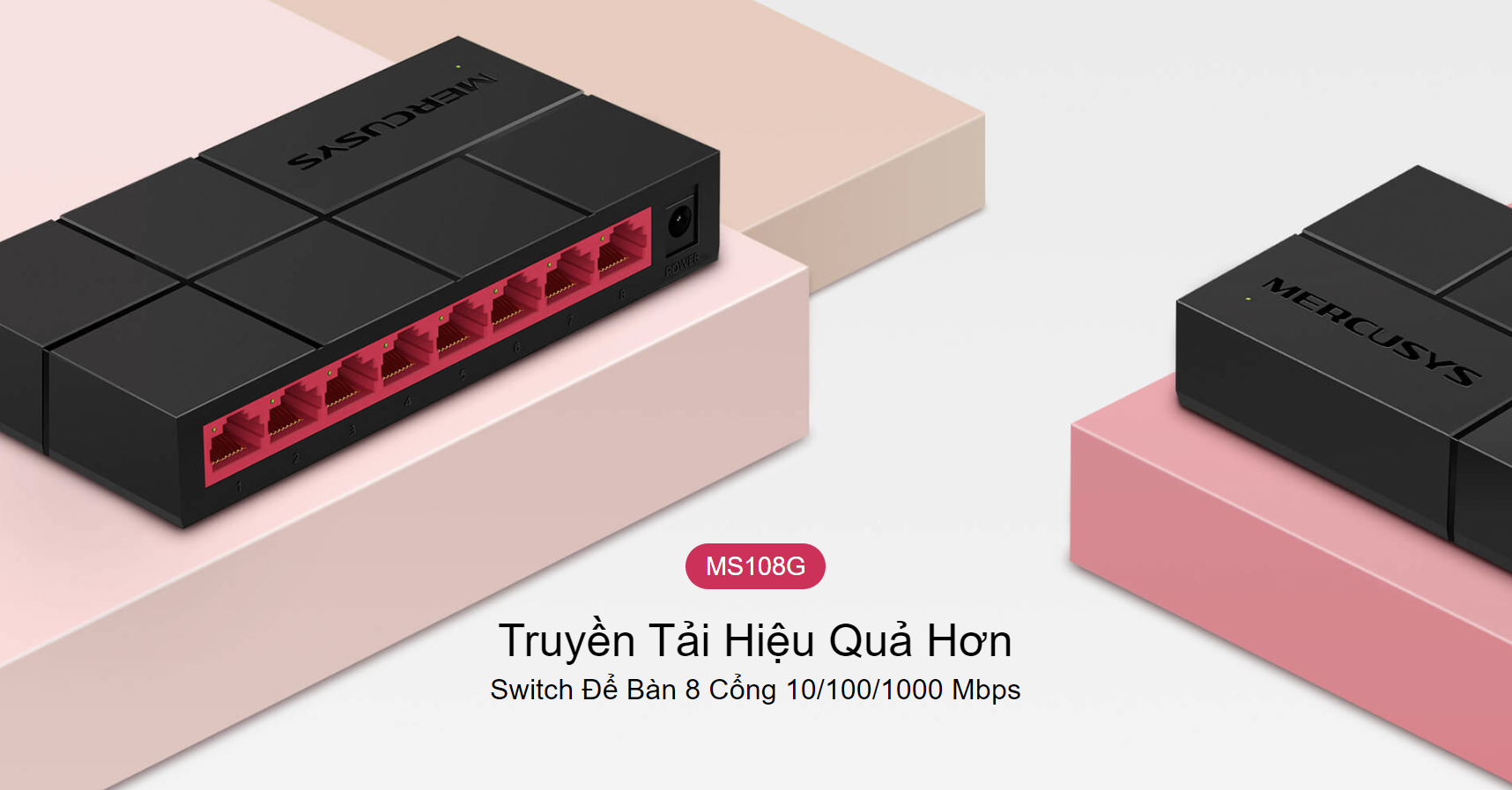 Bộ Chia Mạng 8 Cổng Gigabit MERCUSYS MS108G - Switch 10/100/1000Mbps _________________________________________________________ - Tám cổng RJ4510/100/1,000 Mbps tự động đàm phán, tự động hỗ trợ MDI / MDIX - Mở rộng kết nối có dây